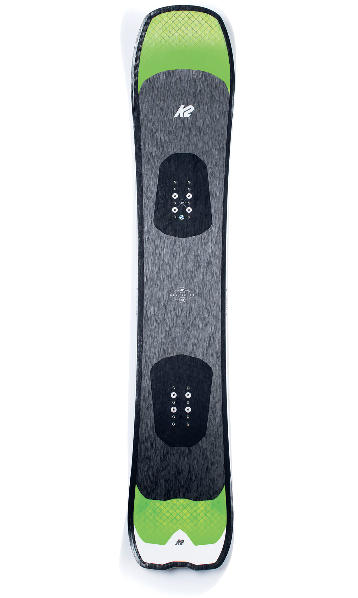Das Freeride-Snowboard K2 Alchemist vereint in sich alles, was K2 Snowboards an Topzutaten zu bieten hat. Der Kern Bambooyah Pro integriert in sich Bambus für ein außergewöhnliches Gewicht-Power-Verhältnis, eine Spectral-Braid-Verstärkung auf der gesamten Boardlänge für eine exzellente Torsionskontrolle und maximale Stabilität, Glasfaser-Einsätze SpaceGlass für Robustheit und Kantengriff sowie schließlich Carbon Power Fork Verstärkungen am Tail für maximalen Rebound am Kurvenausgang. Der Boardbelag Carbon Infused 5500 Sintered sorgt für ein ausgezeichnetes Gleiten und rundet damit die Top-Eigenschaften dieses Ausnahme-Snowboards ab.