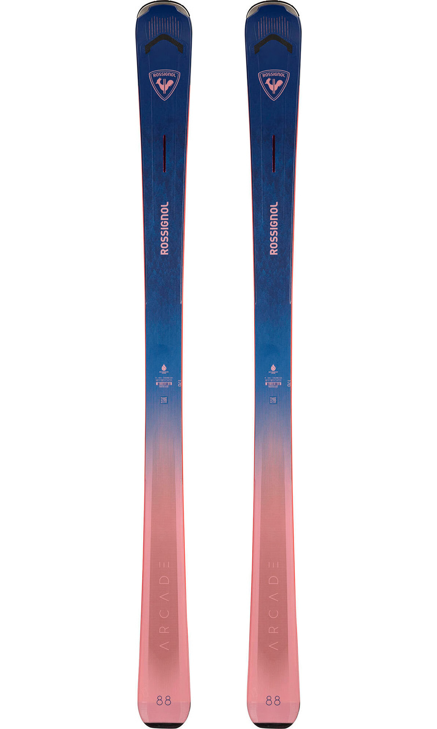 All day. Any day. The women's Rossignol Arcade 88 skis redefine the all-mountain category with a personality that can literally ski anywhere. Designed with expert skiers, patrollers and instructors in mind, they balance a blend of race tech and freeride construction to create a new quiver-of-one experience. Tip and tail rocker maintain a playful, adaptable feel in all conditions, while extended sidecut and rectangular sidewalls maintain precision when carving. They're made for the snow you find versus the snow you expect to find, so you can carve and charge from first chair to final lap, all winter long. 100% every turn.