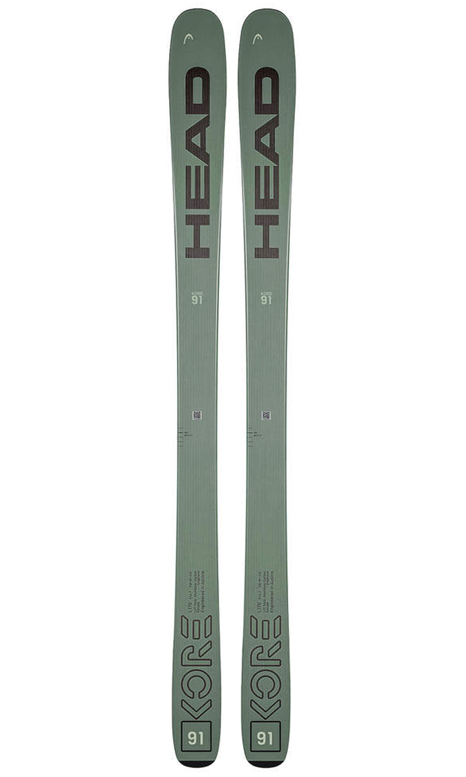 The high-performance KORE 91 W has a lightweight construction and vibration-absorbing properties, which means more energy for carving up the frontside, exploring the backside or getting a great workout while touring. HEAD blends core materials designed to reduce weight without sacrificing performance including Graphene fused into the rockered tip and tail, light but stiff Karuba wood, and triaxle woven carbon. HEAD's new topsheet shape adds durability to this easy-to-turn freeride ski.