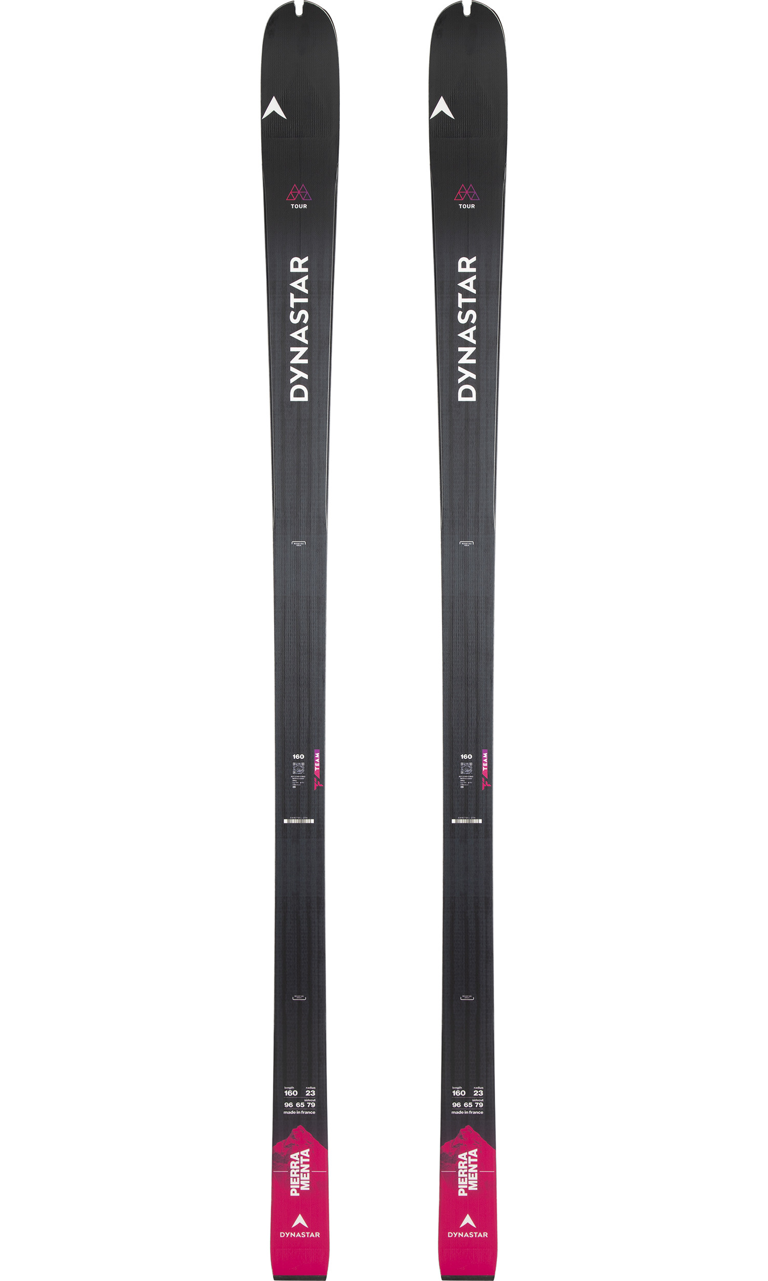 Every gram counts on race day. Weighing in at an incredible 710 grams per ski (160cm), the Dynastar M-Pierra Menta alpine touring skis are featherlight. A blend of carbon and microcell create the ultralight core, while sandwich construction with rectangular sidewalls maintains a responsive feel and strong edge grip.