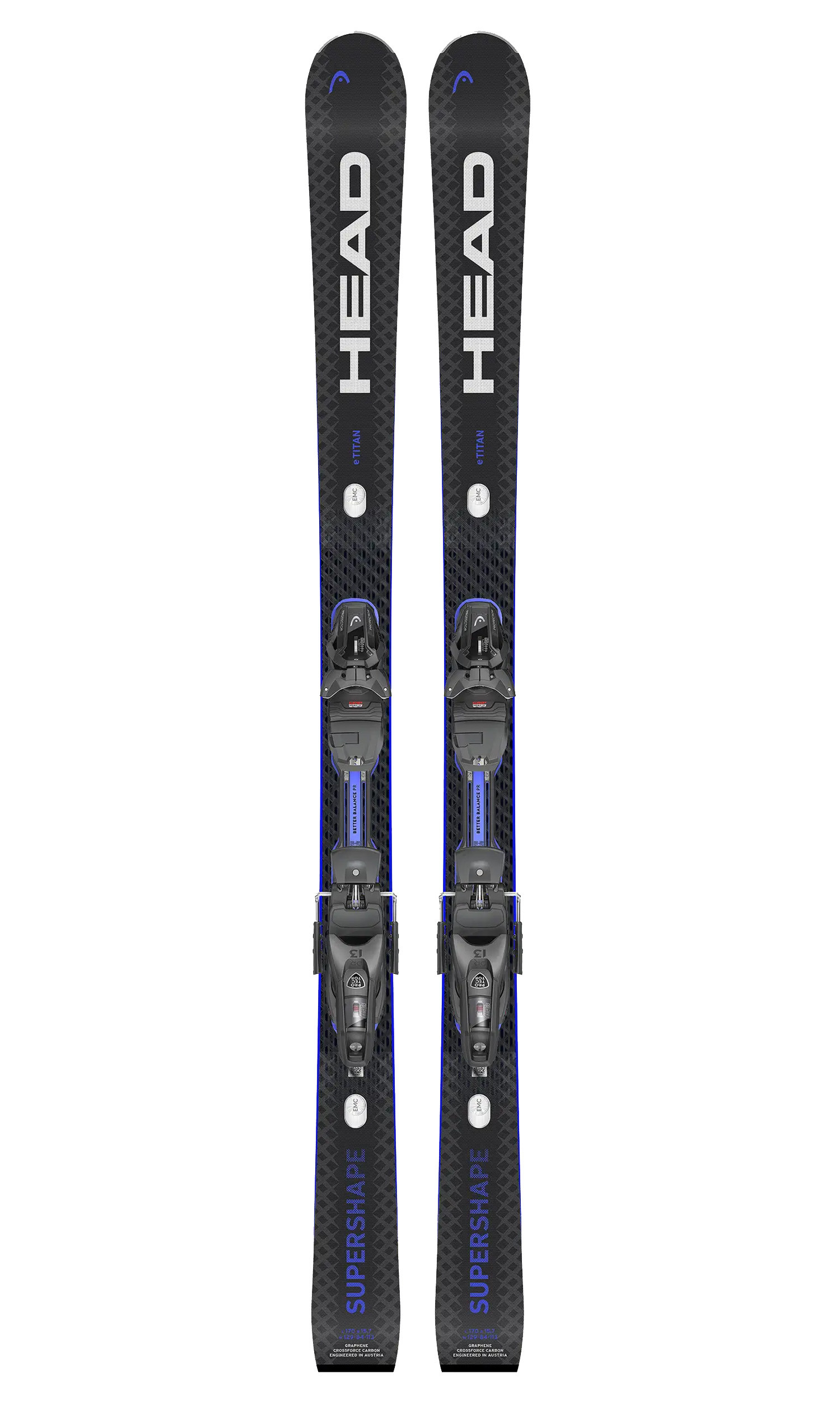 Le Supershape e-Titan se refait une beauté cette saison : sa nouvelle construction et sa nouvelle forme se traduisent par une performance carving supersonique et un surplus de confiance sur les pistes. Avec un patin de 84 mm et un esprit né de la compétition, le Supershape e-Titan est capable de charger sur neige variable. Les skieurs intermédiaires et experts pourront se fier à une transmission d'énergie sensationnelle et une superbe prise de carre dans les petites et grandes courbes grâce à une construction haute performance avec intégration de graphène et Crossforce Carbon. Une fine couche d'aluminium allège son poids et permet une maniabilité aisée, même en hors-piste. L'EMC de HEAD réduit les vibrations pour une glisse fluide quelle que soit votre vitesse. Son système de plaque unique Better Balance garantit un angle d'inclinaison constant pour toutes les pointures, offrant un équilibre parfait au skieur.